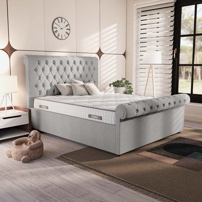 Berlin Upholstered Bed - Silver Linoso