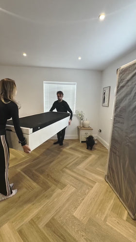 We deliver with a 2 man team straight to your room of choice. Choose your preferred delivery date at checkout. -